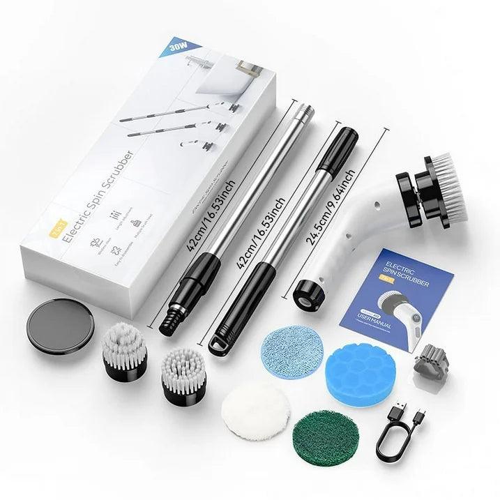 - 【Retractable Handle, Free Adjustable Length】This cordless power scrubber with hand-held and extendable handle, which can adjust from 16 to 41 inches, and you do not have to drag the power cord, it can help you clean hard-to-reach places and every corner, so you don't need to bend over or kneel to scrub the tub and floors. The shower brush for cleaning is lightweight, making it comfortable for users to hold, and not too difficult to operate during long sweeps.